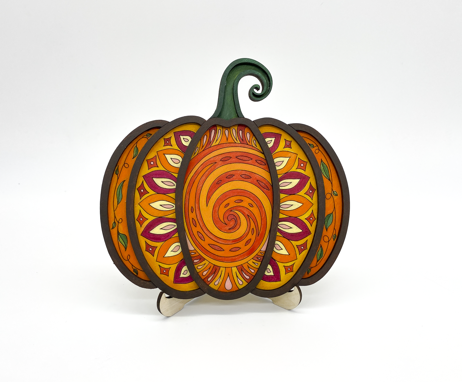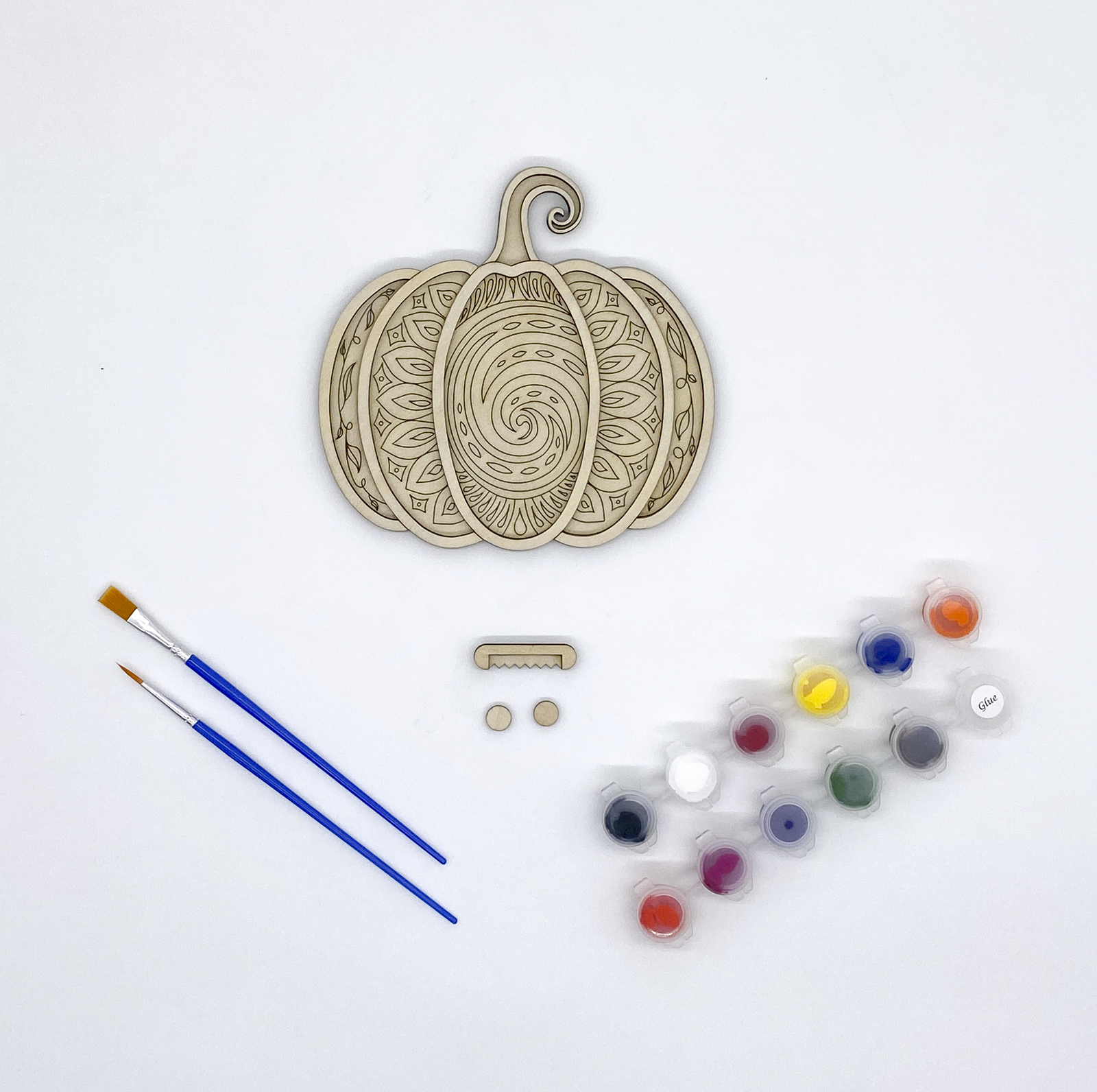 Bring autumn coziness to life with the Pumpkin Mandala 3D DIY Paint Kit! This layered wood design features a beautifully engraved spiral mandala on the bottom layer with a bold pumpkin overlay on top—ready to paint in festive fall colors.