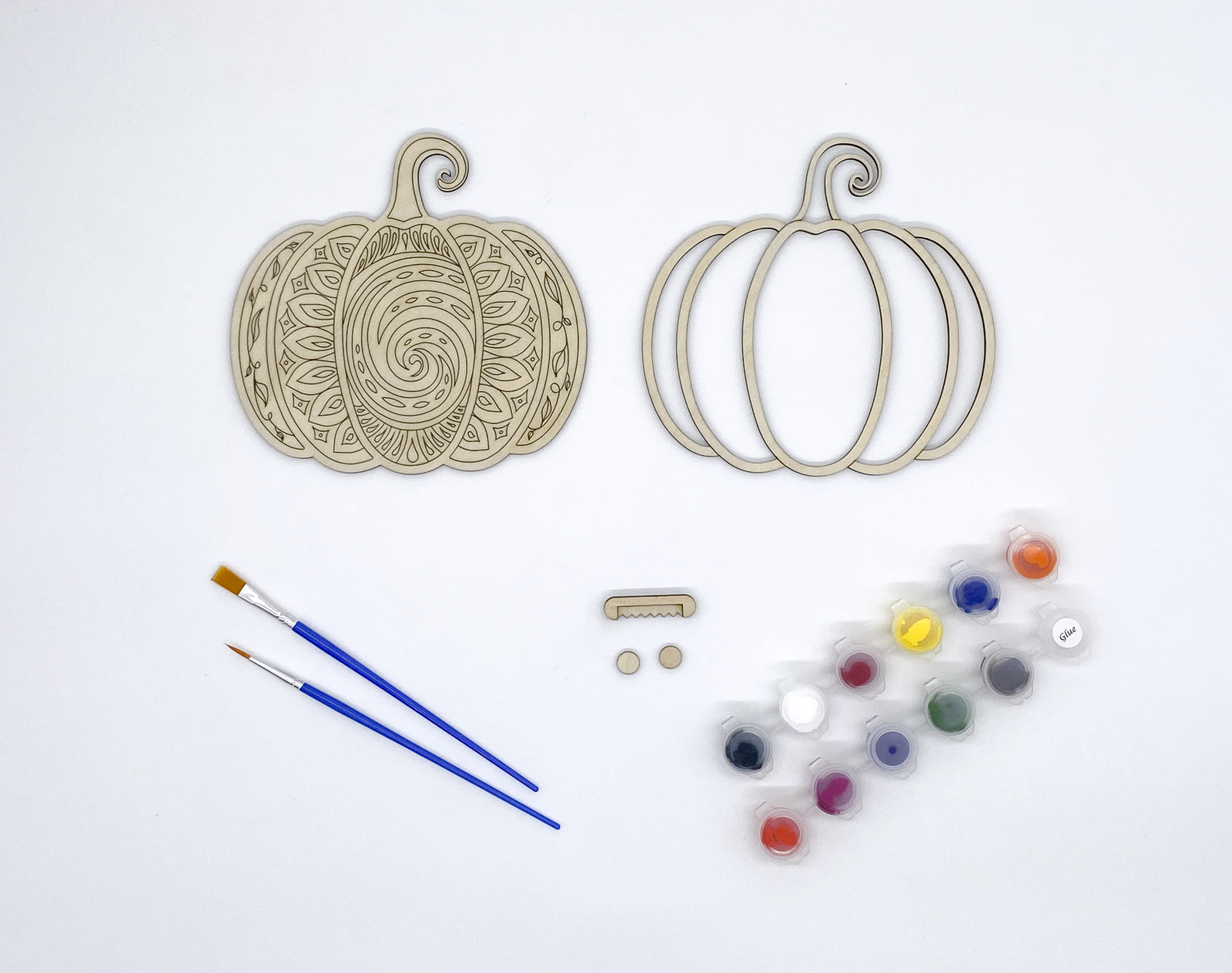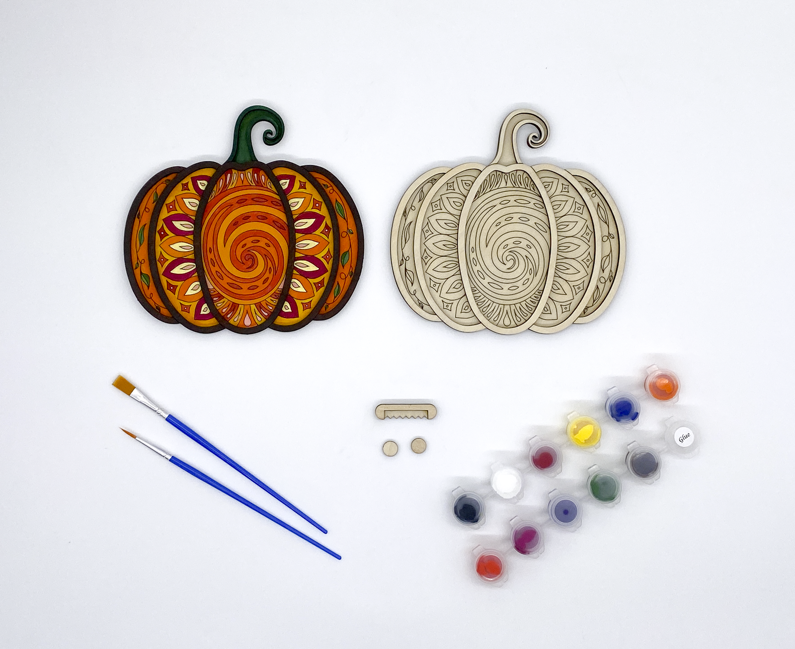 "Pumpkin Floral Mandala", Wood Layered DIY Paint Kit
